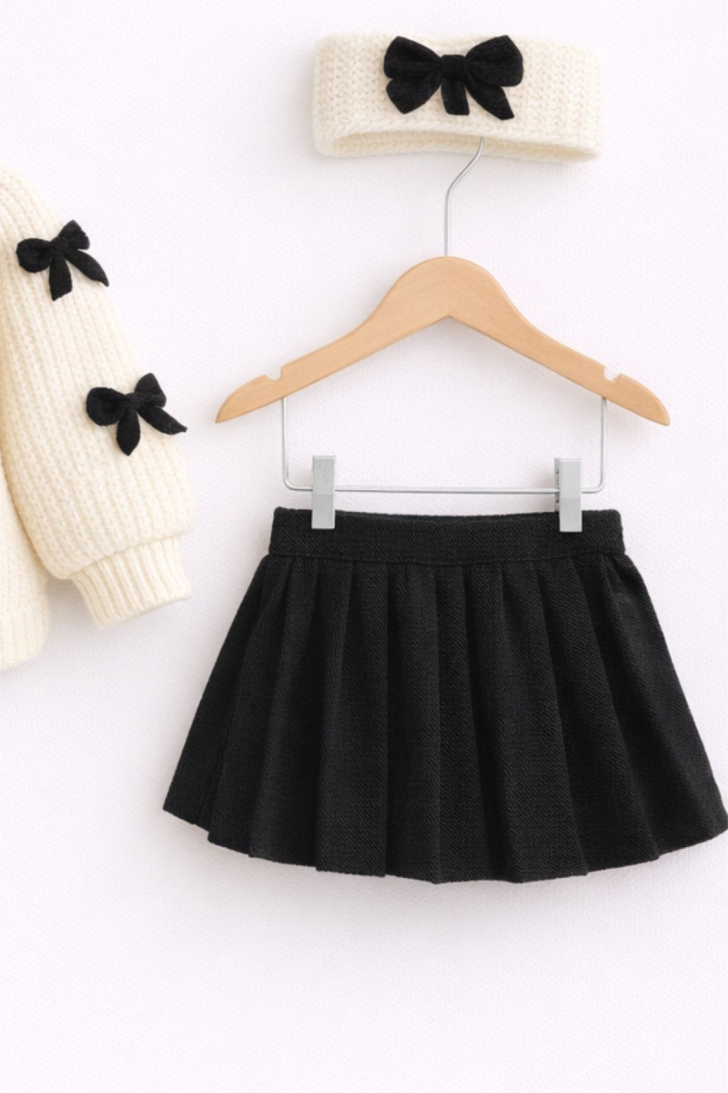 ✨ Ürün Özellikleri Set İçeriği: 1× triko kazak + 1× etek + 1× bandana Doku/Kumaş: Yumuşak triko (pamuk/akrilik karışım) – sıcak tutar, kaşındırmaz
