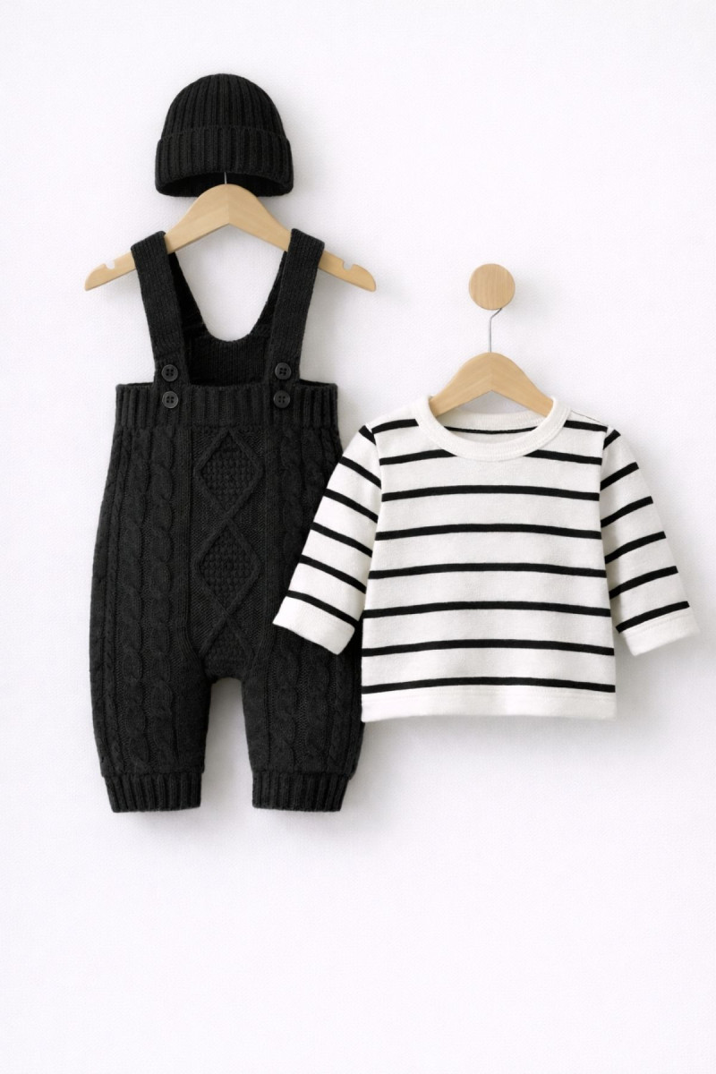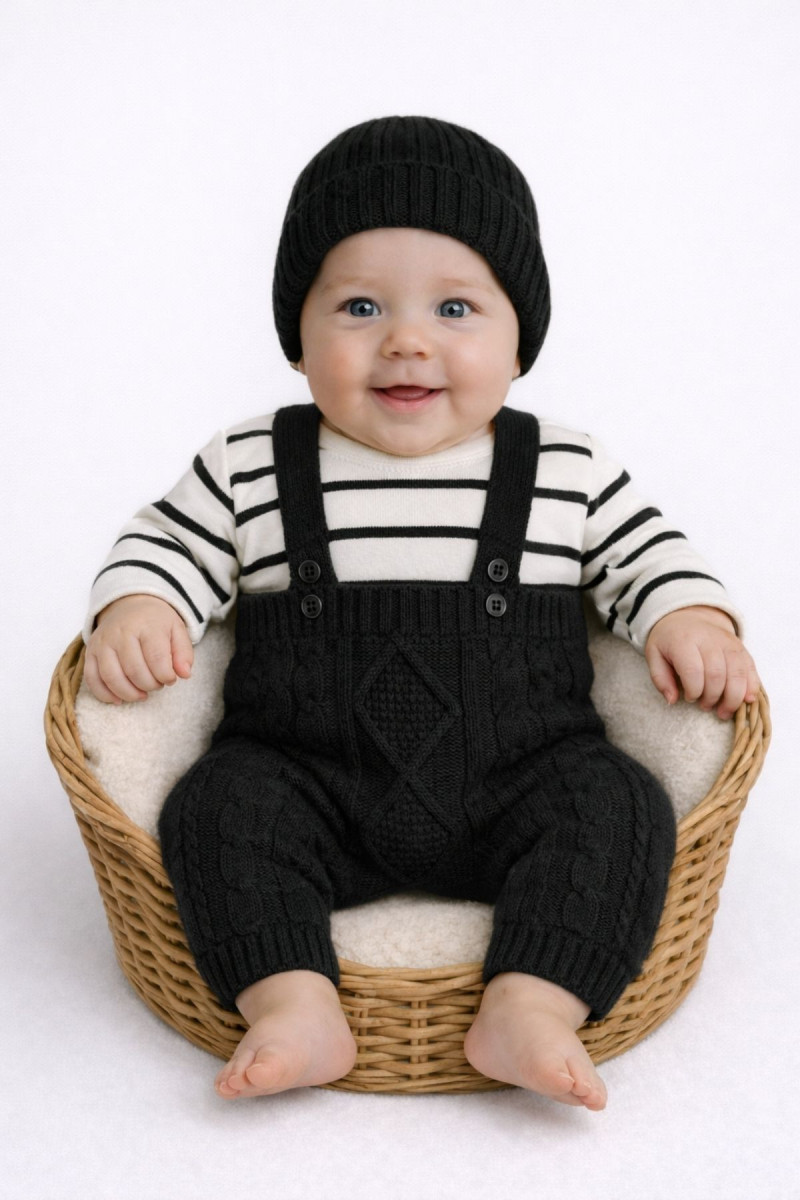 Erkek Bebek Bayramlık Triko Tayt Kazak Bere Takım