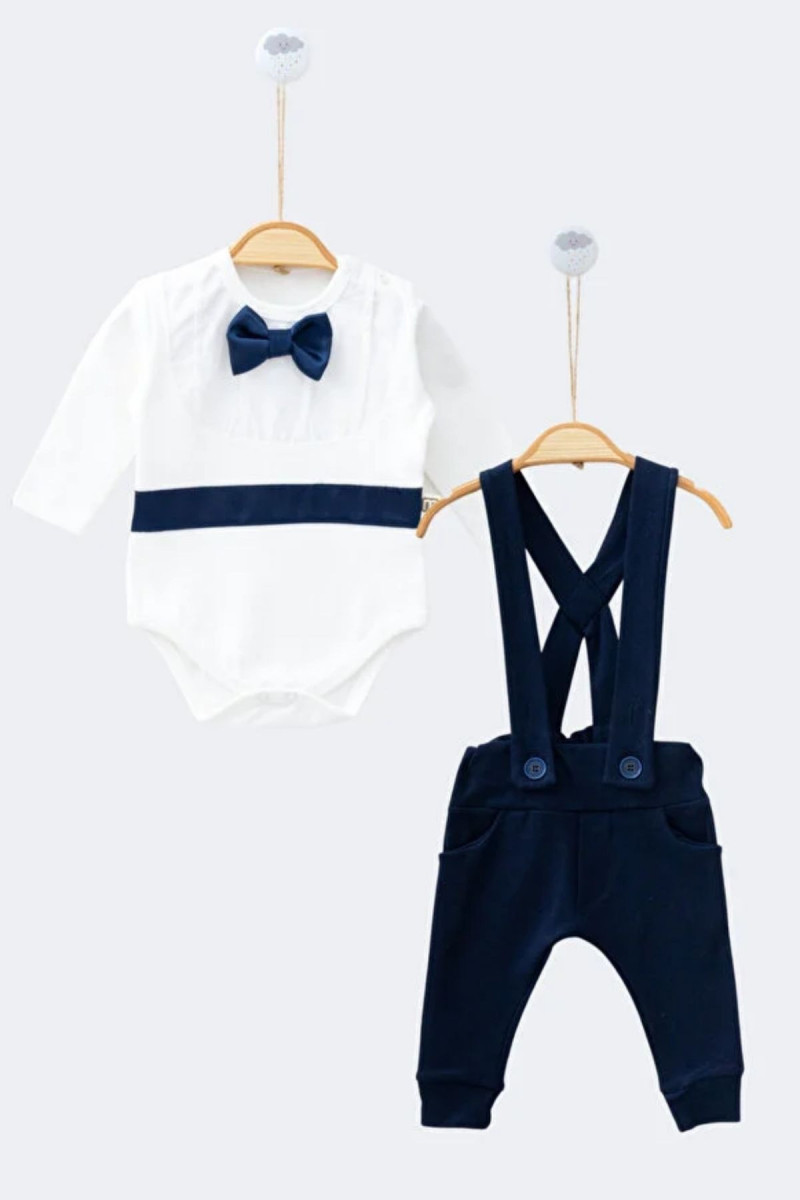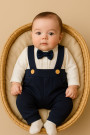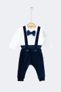 Erkek Bebek Kuşaklı Papyonlu Askılı Pantolon Zıbın Gömlek Takım