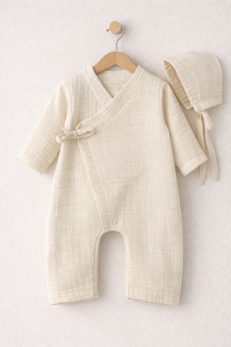 Yenidoğan Bebek Organik Müslin Kimono Tulum