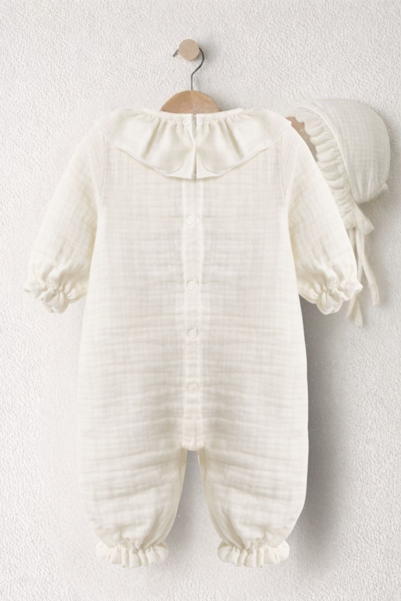 3. Şapka Detayı:Bebeğinizin başını sıcak tutmak ve tamamlanmış bir görünüm elde etmek için uyumlu şapka takımıyla birlikte gelir. ;